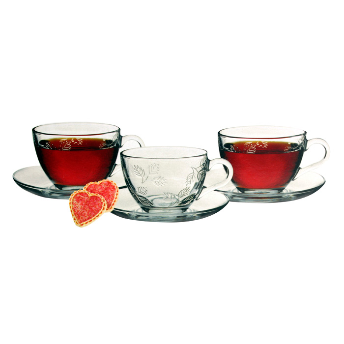 W skład zestawu Pasabahce wchodzi sześć filiżanek wraz ze spodeczkami. Serwis kawowy to elegancki komplet wykonany z przezroczystego szkła, którego nie może zabraknąć w Twoim domu! Świetnie sprawdza się do podawania popołudniowej kawy albo herbaty do podwieczorku. Oryginalna, przezroczysta filiżanka o optymalnej pojemności równej 220 ml ma poręczne uszko, za które możesz wygodnie trzymać, a niewielki spodeczek idealnie pasuje i sprawia, że komplet wygląda naprawdę elegancko.