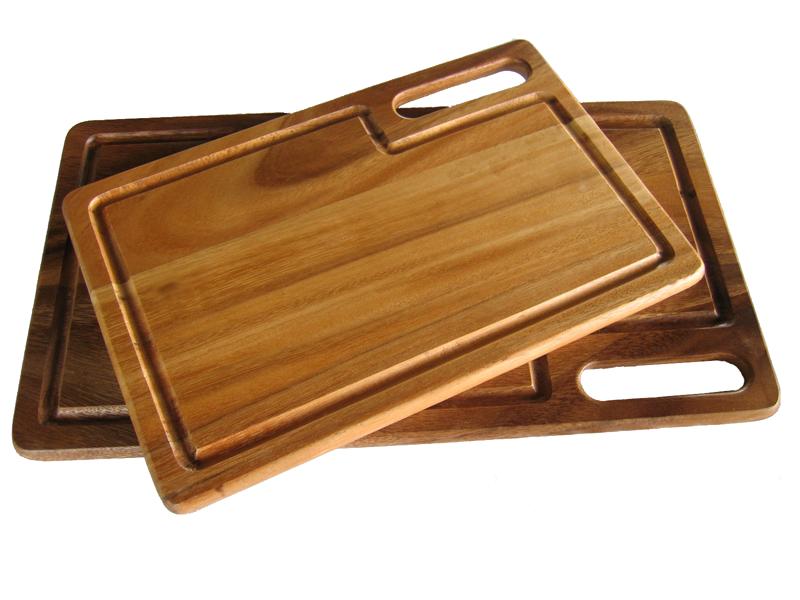 Deska do krojenia z drewna akacjowego w ciemnym kolorze. Akacja należy do drzew twardych, odpornych na ścieranie, dlatego też deska wykonana z takiego rodzaju drewna jest idealna do częstego użytkowania.