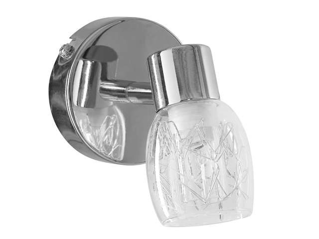 Klasyczny, ozdobny kinkiet Buzz o wymiarach 11,5x8x10,5 cm. Klosz wykonany z grubego, wysokogatunkowego szkła, zawieszka metalowa na wysoki połysk w kolorze srebrnym. Zasilanie: żarówka G9 28W.