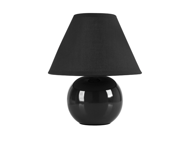 Klasyczna, okrągła lampa stołowa Colour Black o wysokości 26 cm. Abażur okrągły, rozszerzany ku dołowi w kolorze czarnym. Trzon lampy w formie czarnej, błyszczącej kuli. Zasilanie: żarówka E14 40W.