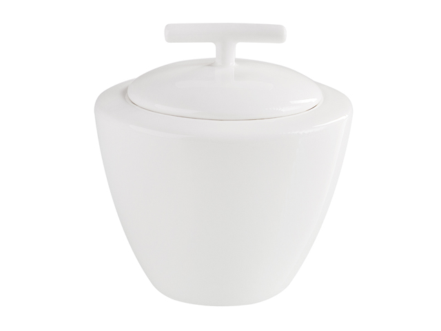 Biała cukiernica z porcelany Squito Yong o pojemności 350 ml. Cukiernica posiada pokrywkę ze stylowym uchwytem, który nadaje jej nowatorski design, dzięki czemu cukiernica wspaniale prezentuje się na stole.