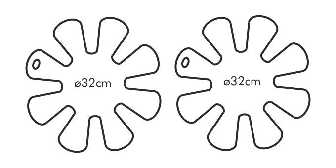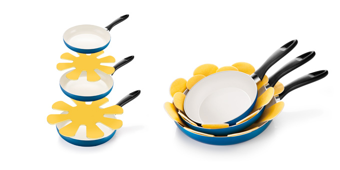 Przekładki odpowiednie są do patelni o średnicy od 24 do 32 cm oraz do innych naczyń o podobnych rozmiarach. Nie należy stosować ich do gorących lub brudnych naczyń. Podkładek nie należy używać jako podstawek pod gorące naczynia.