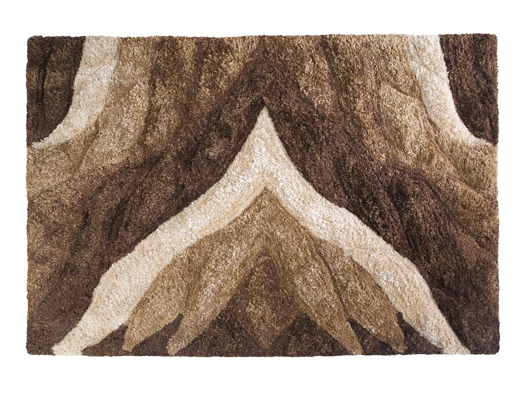 Dywan wykonany z grubej i cienkiej nici poliestrowej o grubej mięsistej strukturze. Całość z głebokimi ręcznie robionymi wycięciami podkreslającymi wzor i kolorystykę dywanu.