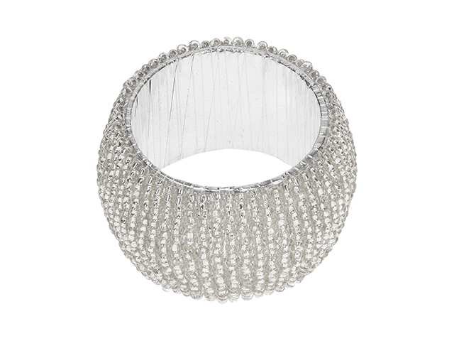 Serwetniki w kolorze srebra zdobione są koralikami, są również bardzo oryginalne i pięknie komponują się z różnymi serwetkami. Będą wspaniałą ozdobą wnętrza domu, tarasu lub ogrodu!
