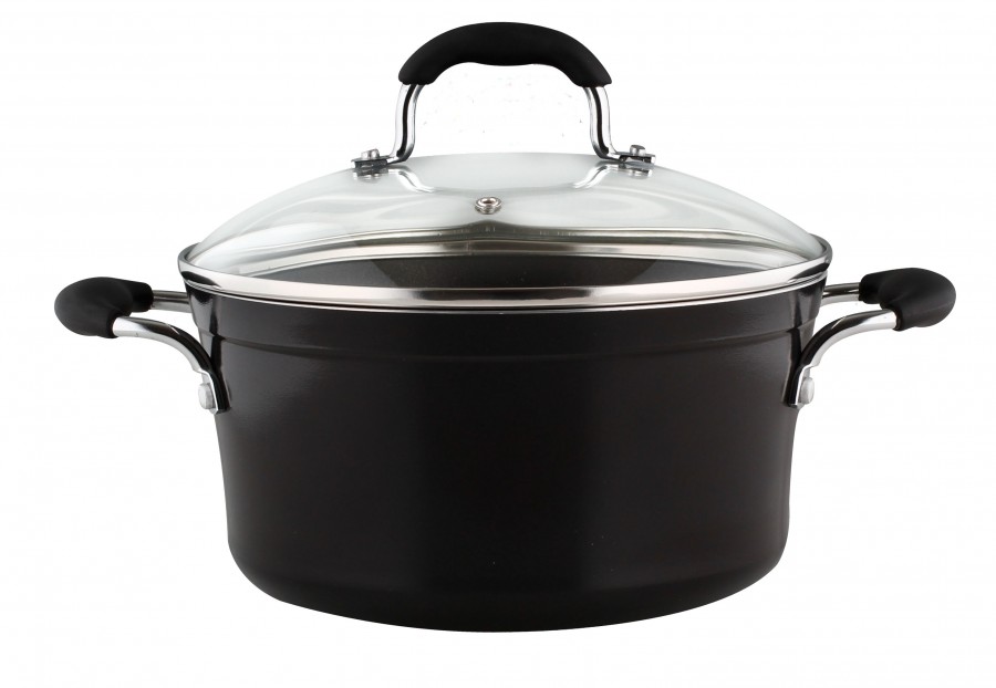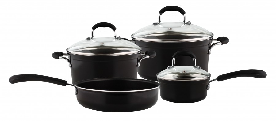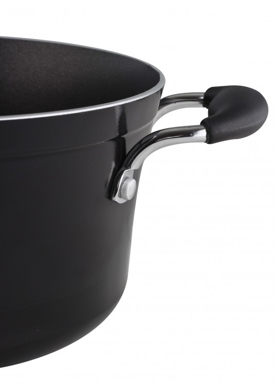 Komplet naczyń Onyx to wyjątkowe połączenie nowoczesnego kształtu, trwałej emaliowanej powłoki na zewnątrz oraz praktycznej nieprzywieralnej powłoki wewnętrznej TeflonClassic® DuPont.