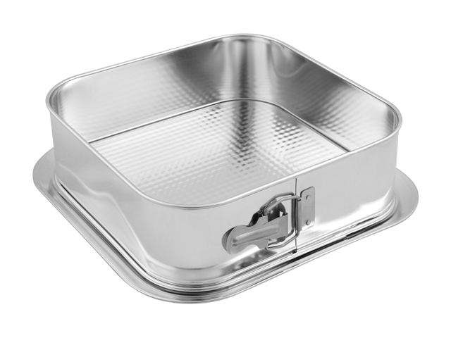 Kwadratowa forma do tortów o wymiarach 24x24 cm, szerokość całkowita to 24 cm. Wykonana z wysokogatunkowej, ocynkowanej blachy, nie ulega deformacji przy wysokich temperaturach. Gramatura 0,5 kg.