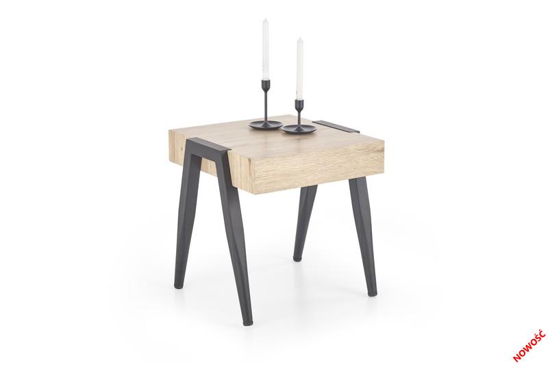 Ława TREFL to połączenie prostej formy ze szlachetnością surowców meblowych. TREFL znakomicie odnajdzie się w industrialnej, kolonialnej czy typu loft przestrzeni. Stolik kawowy TREFL został zaprojektowany z trwałego materiału MDF laminowanego o wysokiej jakości oraz z odpornej na zarysowania stali malowanej proszkowo. Kolorystyka mebla zachwyca – to przepiękne, dostojne kolory czarny i dąb san remo. Ich połączenie dało efekt unikalności i niebywałej klasy. TREFL to wygoda, szyk i nowoczesna elegancja. Wymiary: 50/50/50 cm.
