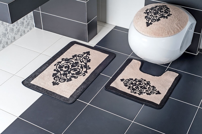 Poszukujesz ciekawie prezentujących się dywaników do swojej łazienki? Jeśli tak, to koniecznie zainwestuj w świetny zestaw beżowo – czarnych dywaników MADERA! Wymiary: dywanik 45x70 cm, 45x45 cm podkładka. Modne dywaniki MADERA zostały wykonane z miękkiego, poliestrowego weluru zapewniającego komfort użytkowania. Dywaniki posiadają bezpieczne, antypoślizgowe podłoże. Niebanalny nadruk oraz stonowana kolorystyka nadadzą każdej łazience pełnego gustu charakteru. Dywaniki można prać w pralce (temperatura prania 30°C).