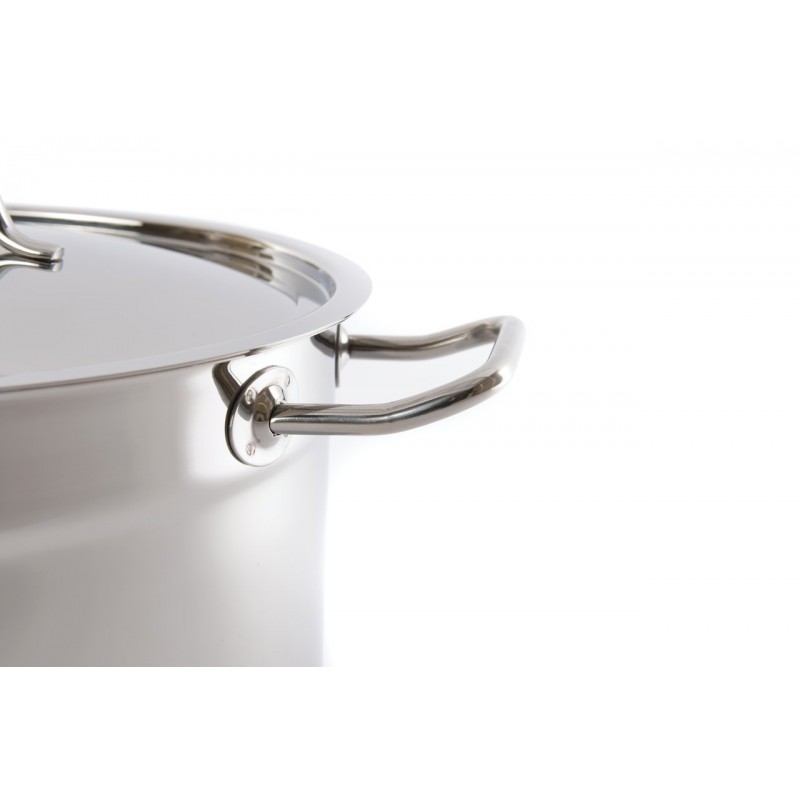 Nowoczesny i funkcjonalny garnek marki Berghoff posiadajacy 4-warstwową kapsułową technologia dna, która obejmuje grube aluminium i dno z miedzi (materiały szybko przewodzące ciepło) służące doskonałemu przewodzeniu i rozprowadzeniu ciepła. Trwała ochrona ze stali nierdzewnej okrywa aluminium w celu zachowania długoletniej trwałości i doskonałych rezultatów gotowania.
