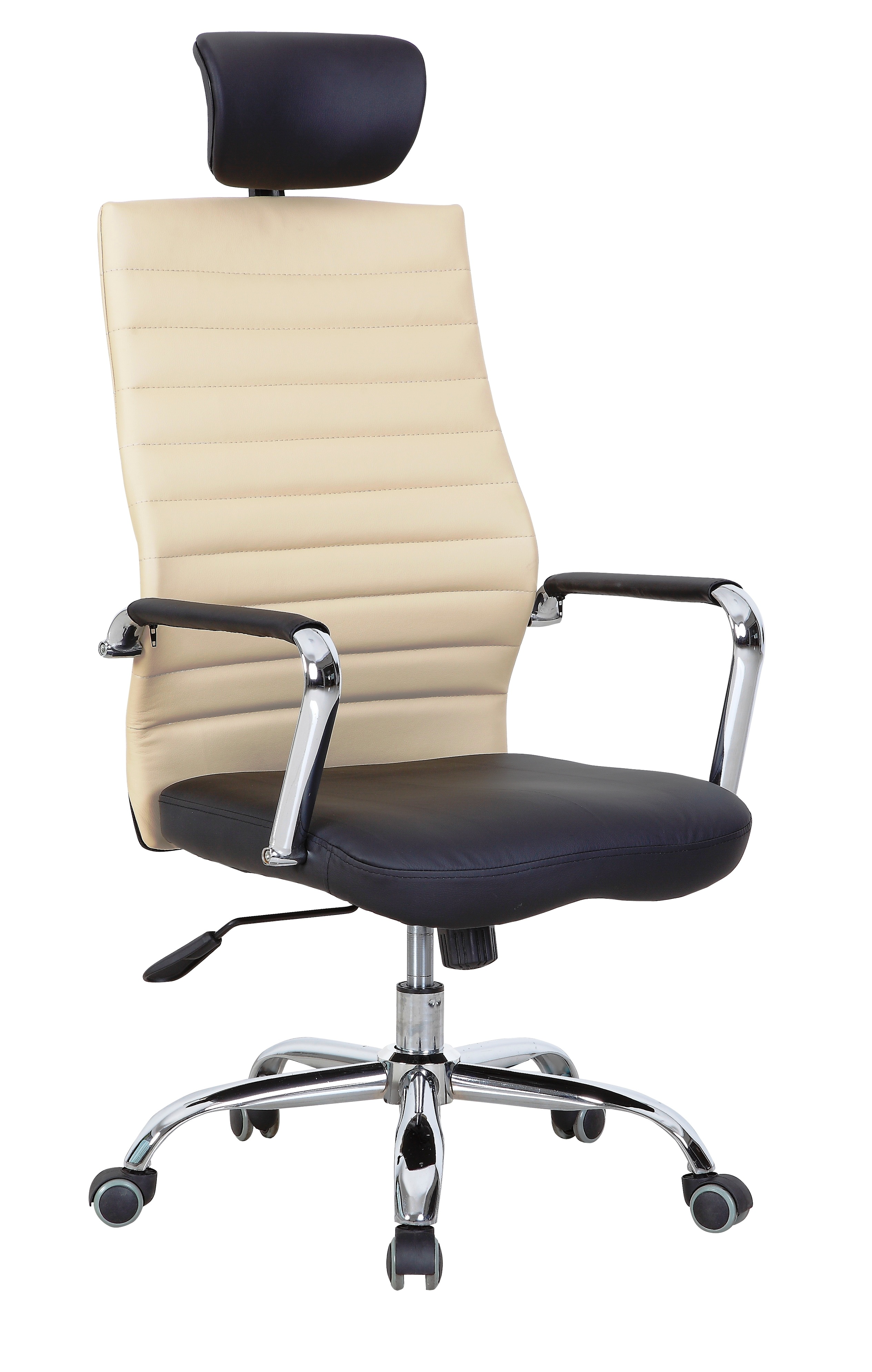 Co sprawi, że poczujesz się w swoim gabinecie naprawdę komfortowo? Z całą pewnością fanastyczny fotel LEGOLAS! Ten mebel to gwarancja Twojej wygody. Został zaprojektowany w niezwykle stylowy sposób. Czarno-kremowe obicie z eco skóry oraz metaliczne akcenty nadaję mu niepowtarzalnego charakteru. Fotel posiada funkcjonalny mechanizm TILT oraz wygodny zagłówek. Mebel ze swym ciekawym designem świetnie sprawdzi się w każdym wnętrzu. Wymiary: 57/48/112÷118 cm.