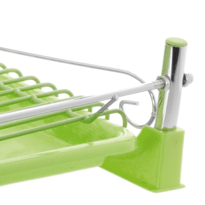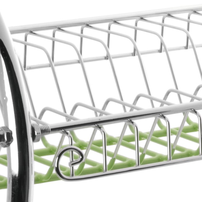 Suszarka NELLY ułatwi zachowanie porządku w każdej kuchni. Suszarka została wykonana z odpornego na uszkodzenia, trwałego drutu chromowanego. W komplecie znajdują się ociekacz na sztućce i szklanki, które możesz zawiesić po dowolnej stronie suszarki. Suszarka SALLY została wyposażona w podstawkę na wodę. Pokryte silikonem dolne części suszarki pełnią funkcję antypoślizgową. Do wyboru trzy modne kolory: biały, ciemno szary oraz zielony. Łatwy montaż oraz ciekawy design sprawiają, że suszarka SALLY to produkt, z którego każdy będzie zadowolony. Wymiary całej suszarki wraz z bocznymi elementami: długość: 56 cm, szerokość: 26 cm, wysokość: 39 cm.