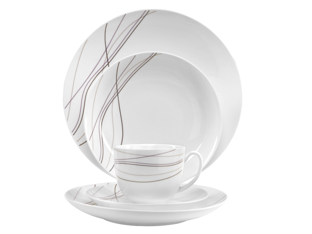 Zestaw zawiera: 6 talerzy głębokich 20cm, 6 talerzy obiadowych 27,5 cm, 6 talerzy śniadaniowych 20,5cm, 6 filiżanek 250ml, 6 spodkow 15,5cm. Masa porcelanowa w kolorze łamanej bieli. Wzor kwiatowy. Zestaw przeznaczony jest do zmywarek.
