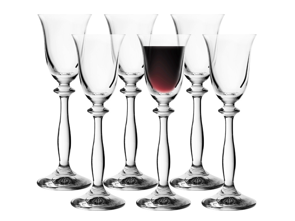 Zestaw stylowych 6 kieliszków do likieru Angela, wykonanych z wysokoprzeźroczystej krystaliny, doskonale oddającej dźwięk kryształu. Pojemność 60 ml.